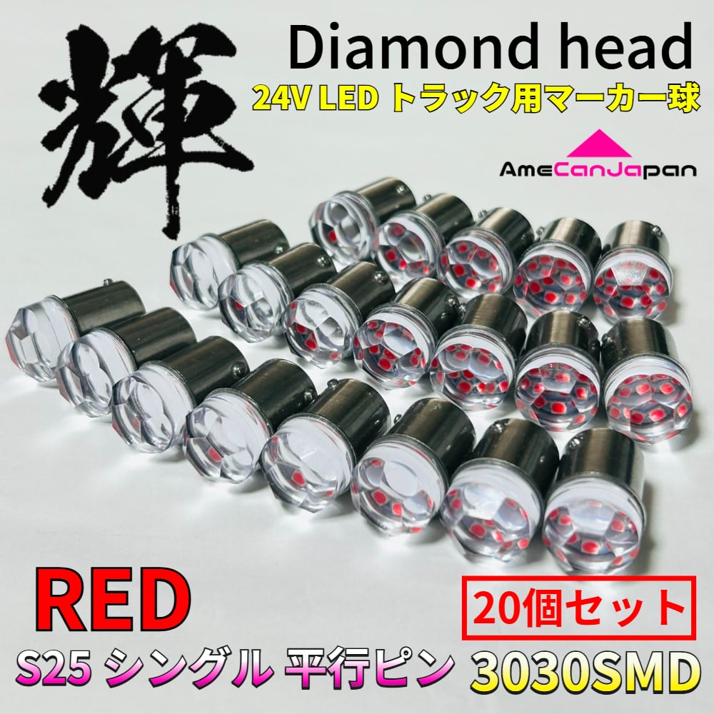 レッド 20個セット 24V トラック用品 S25 シングル BA15S 平行ピン シングル球 ダイヤバルブ