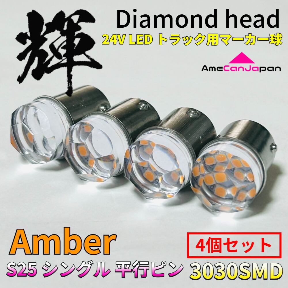 アンバー 4個セット 24V トラック用品 S25 シングル BA15S 平行ピン シングル球 ダイヤバルブ