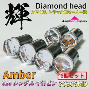 アンバー 6個セット 24V トラック用品 S25 シングル BA15S 平行ピン シングル球 ダイヤバルブ