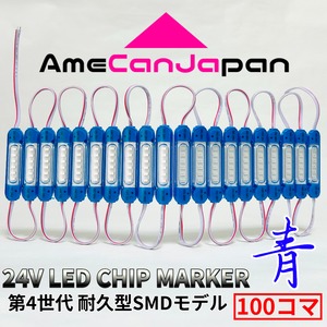 青 100コマ 第4世代 24V チップマーカー タイヤ灯 SMDチップモデル 密閉設計トラック用 LED マーカーランプ・シャーシマーカー