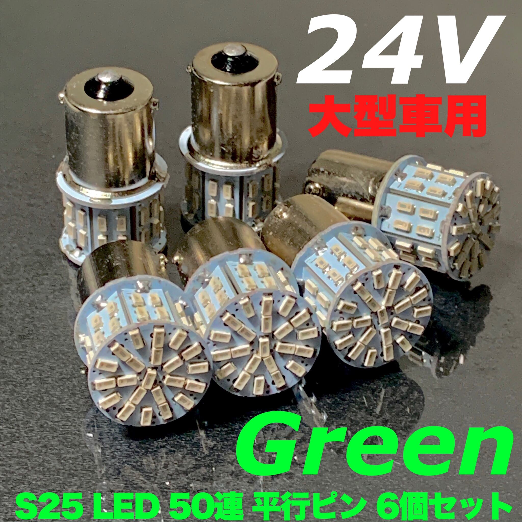グリーン 緑 6個セット 24V S25シングル LED 50連 平行ピン トラック用 マーカー球