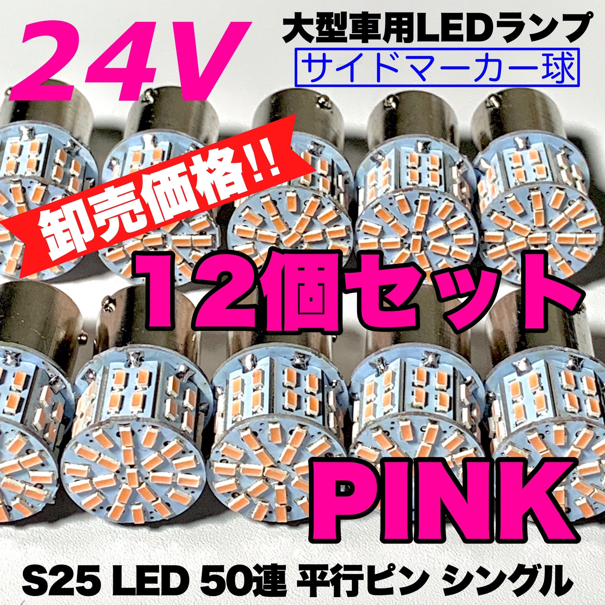 ピンク 紫 12個セット 24V S25シングル LED 50連 平行ピン トラック用 マーカー球