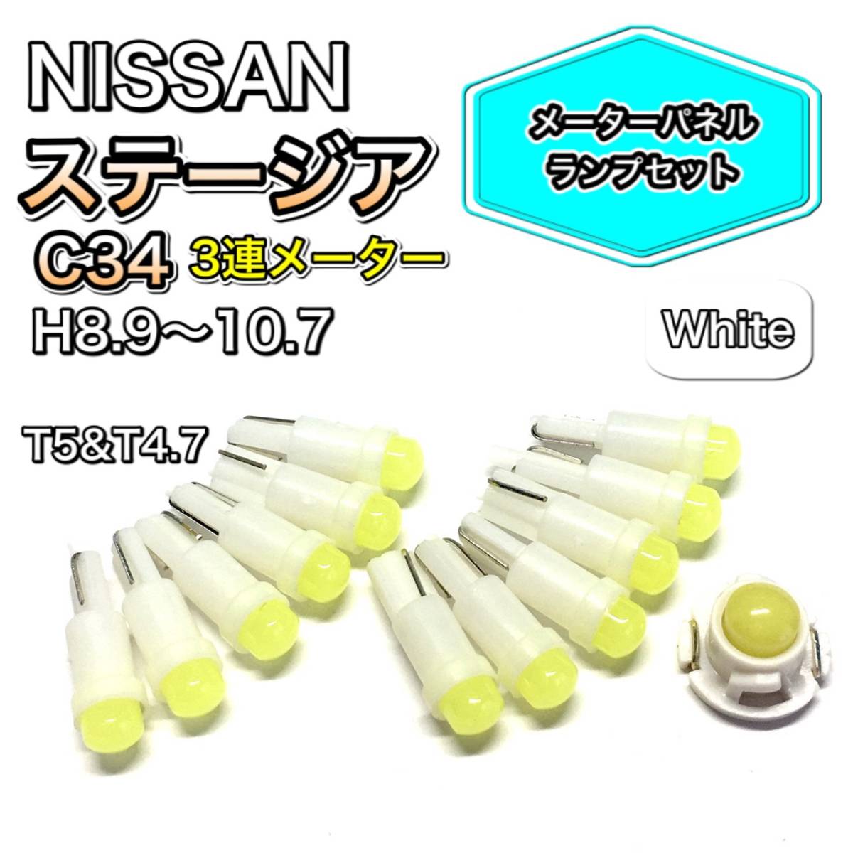 ステージア C34 マイナー前 3連 メーター 打ち換え用 LED メーターランプ T4.7 T5 T4.2 T3 ウェッジ 日産 ホワイト