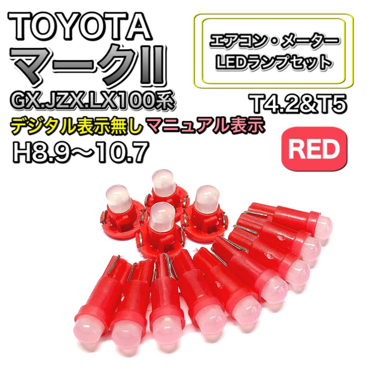 マークⅡ GX.JZX.LX100系 マニュアル表示 打ち換え LED エアコン・メーターランプセット T4.7T5 T4.2 T3 ウェッジ トヨタ レッド