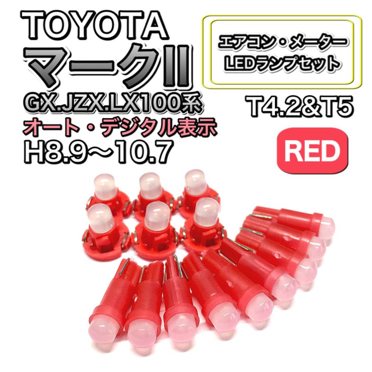 マークⅡ GX.JZX.LX100系 オートデジタル表示 打ち換え LED エアコンメーターランプセット T4.7T5 T4.2 T3 ウェッジ トヨタ レッド