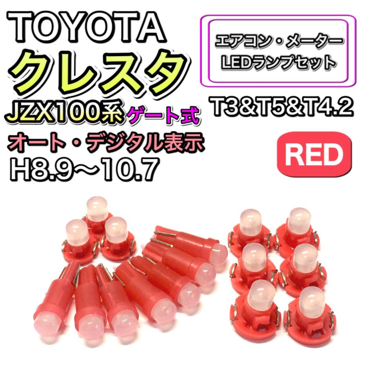 クレスタJZX100 ゲート マイナー前 オートデジタル 打ち換え LED エアコン・メーターランプ T4.7 T5 T4.2T3 ウェッジ トヨタ レッド