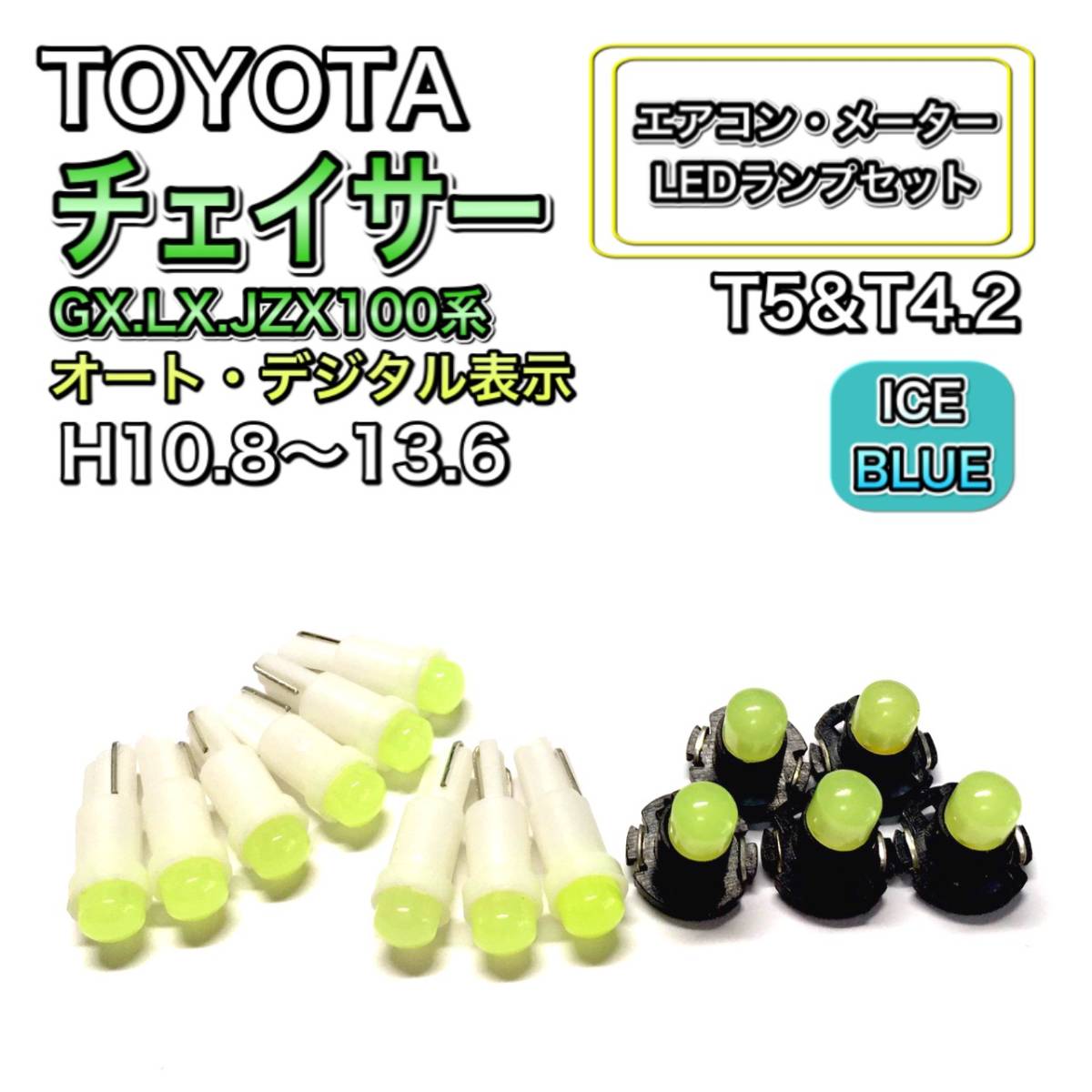 チェイサー GX.LX.JZX100 マイナー後 オート・デジタル 打ち換え LED エアコンメーター T4.7 T5 T4.2T3ウェッジ トヨタ アイスブルー