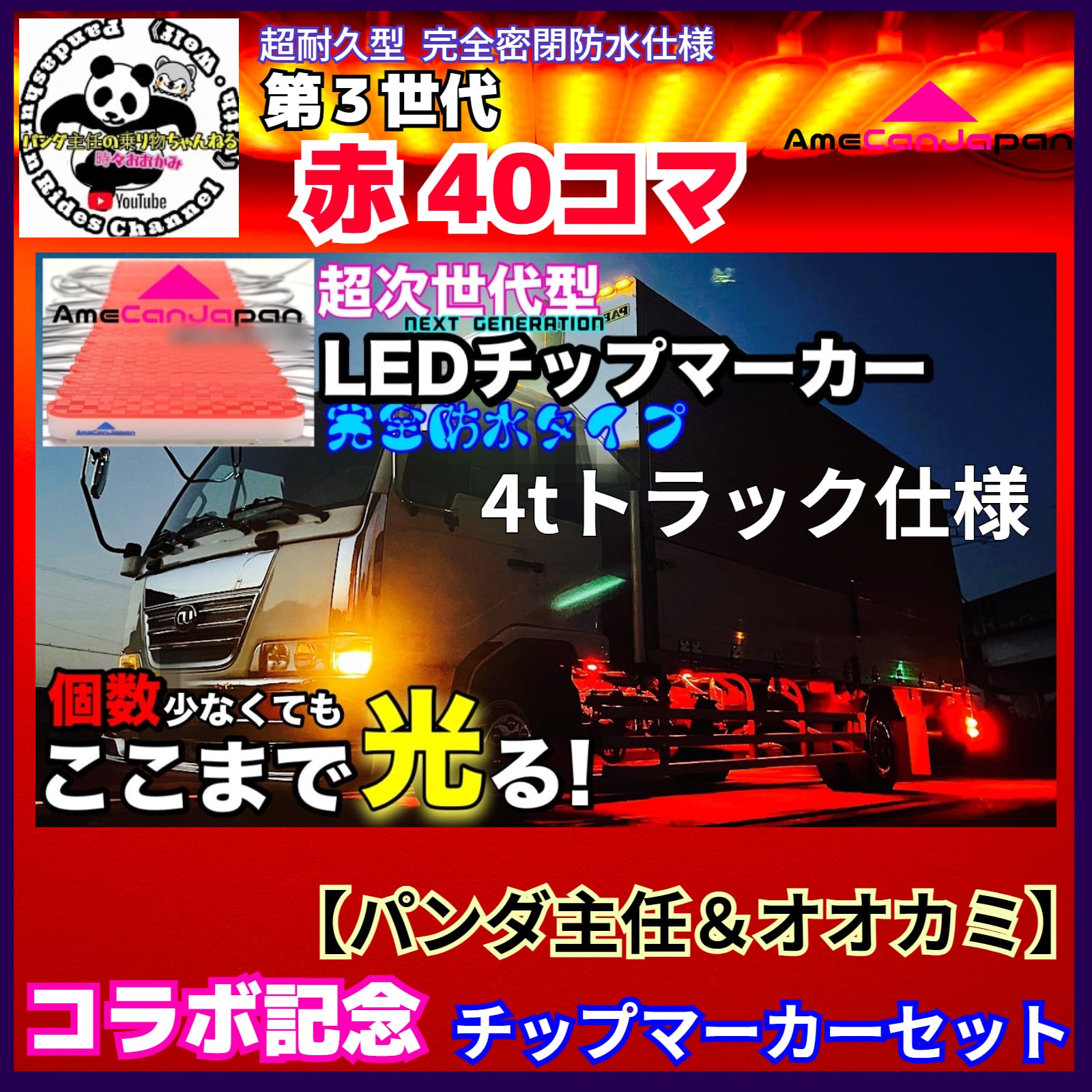 ◇パンダ主任&オオカミ 仕様 コラボ記念セット◇4tトラック シャーシマーカー 24V チップマーカー 完全密閉タイプ 第3世代 赤 40コマ