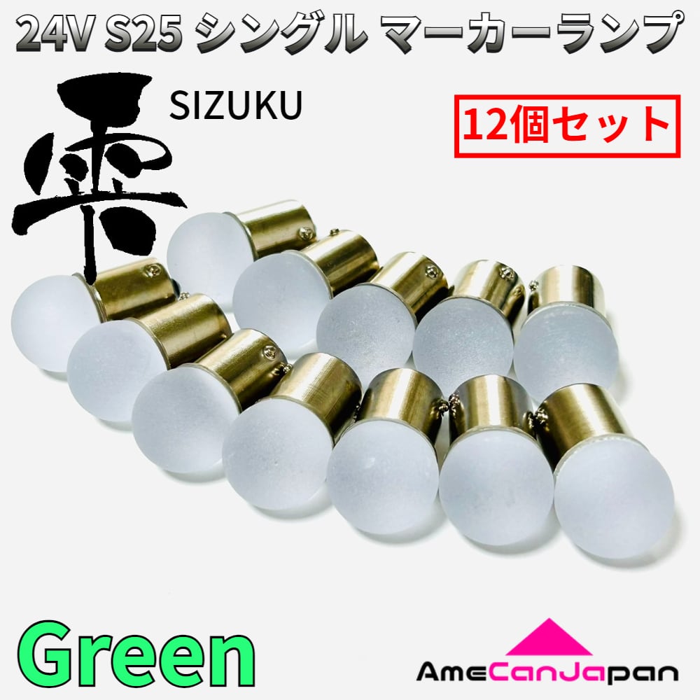 グリーン 12個セット 24V トラック用品 S25 シングル BA15S 平行ピン シングル球 マーカーランプ サイドマーカー バスマーカー 雫バルブ